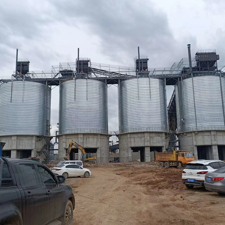 接收與清理設置在筒倉中央該形式筒倉一般采用對稱排列,提升機井架固定,經過提升后的物料通過倉頂溜管進人筒倉。這種形式省去了倉頂輸送設備和上通廊,從而節省了建造費用,縮短了建造工期。對于貯存時間要求較長的大型糧庫,則應根據物料的流向、場地情況、工藝要求等合理地配置投料口、工作塔、烘干塔及鋼板倉的位置。國華鋼板倉介紹了這幾種常見的進料形式,實際中可將各種形式相互組合,相互滲透,根據實際情況合理搭配,靈活選用。